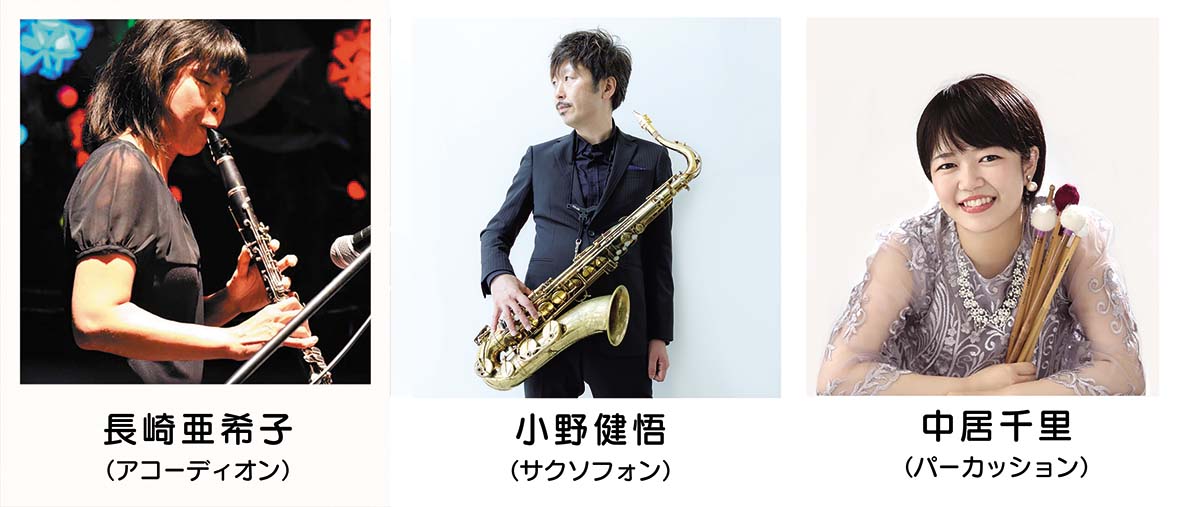 | 【演奏予定 】 ・シンコペーテッドクロック/ルロイ・アンダーソン ・ジ・エンターテイナー/スコット・ジョプリン ・マイフェイバリットシングス/リチャード・ロジャース ・彼に捧げるショーロ/エルメート・パスコアル ・チャルダッシュ/ヴィットーリオ・モンティ ・メニルモンタン/シャルル・トレネ ※他に、楽器紹介コーナーで劇中曲の演奏、お馴染みの曲のメドレーなど。 ※曲目については、当日、奏者の都合で変更になる場合があります。 |